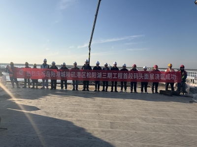 11月19日,松阳湖三期工程首段码头面层浇筑成功,标志着该工程转入面层施工新阶段。 码头面层是港口运行的形象层与安全层,其质量直接决定港口的形象和使用寿命。本次松阳湖三期...